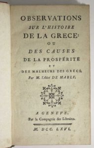 MABLY (Abbé de) - Observations sur l'histoire de la Grèce ou les causes de la prospérité et des malheurs des Grecs - Genève ; La Compagnie des Libraires, 1766 -