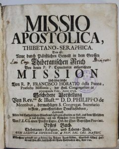 MISSIO APOSTOLICA THIBETANO-SERAPHINA : das ist; Neu durch Papstlichen Gewalt in dem grossen thibetanischen Reich von denen P. P. Capucineren aufgerichtete Mission - München ; Johann Jacob Vötter, 1740 -