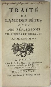[MACY (Abbé)] - Traité de l'âme des bêtes avec des réflexions phisiques et morales - Paris ; P. G. Le Mercier, 1737 -