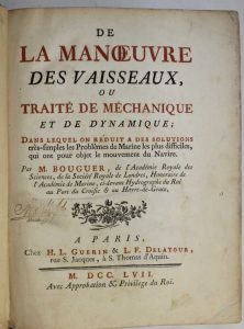 BOUGUER (Pierre) - De la manouvre des vaisseaux, ou traité de Méchanique et de Dynamique, dans lequel on réduit à des solutions très-simples les problèmes de Marine les plus difficiles, qui ont pour objet le mouvement du Navire - Paris ; H....