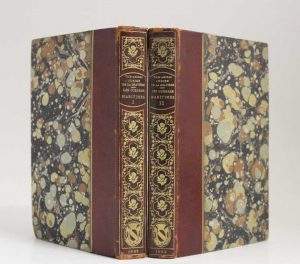 2 volumes In-12° - 8 Plans de batailles et 1 carte dépliants hors texte - Reliure de l'époque demi-maroquin bordeaux (mors frottés, fendus sur quelques cm aux deux 1ers plats) - Dos lisses joliment ornés et datés or avec incisions de pièces de maroquin lie de vin aux motifs floraux, armes dorées de la famille de la Revelière en leurs bas (de légers frottements) - Pièce de titre maroquin lie de vin - Têtes dorées - Bon exemplaire.