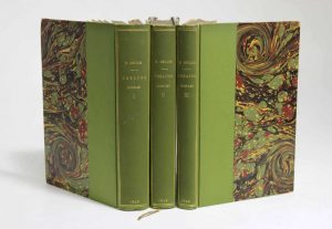 3 volumes In-12° - Portrait photographique de l'auteur au tome I - 1ère édition complète des ouvres d'Henry Becque contenant 2 pièces de plus que l'édition de 1890 - Reliure de l'époque demi-percale verte à la bradel (signée Paul Vié) - Dos lises ornés d'un double filet, titrés et datés or - Envoi de l'auteur à Georges Ancey à l'encre noire au faux titre du tome I - Coins frottés, voire usés - Bon exemplaire.