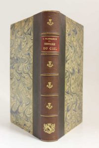 1 volume In-4° - Frontispice et dessins in et hors texte par Benett, carte dépliante des constellations in fine - De très rares rousseurs - Reliure de l'époque demi-chagrin brun - Dos (très légèrement passé) à nerfs orné de motifs floraux ainsi que des armes dorées de la famille de la Revelière en son bas - Pièce de titre maroquin bordeaux - Tête dorée - Bel exemplaire.