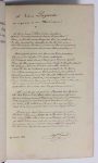 1 volume In-12° - 1 page manuscrite d'Auguste Giraud datée du 29 avril 1843 en réponse à la dédicace imprimée de Jules Lagarde, 2 feuillets manuscrits [de la main de l'auteur ?], pages 37 à 40 - Illustrations gravées hors texte sous serpentes de papier rose, musique gravée - Reliure de l'époque demi-chagrin noir à coins - Plats gaufrés ornés d'un double filet doré - Dos lisse orné de filets dorés titré or - Des rousseurs et certains feuillets jaunis - Bon et unique exemplaire, certainement celui de l'auteur, tiré à 100 exemplaires.