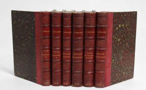 1 volume In-12° - Mention de deuxième édition sur la page de titre - Lettres à une inconnue précédée d'une étude sur Mérimée par H.Taine - Paris ; Michel Lévy - 1874 - 2 volumes In-12° - Mention de sixième édition entièrement revue sur la page de titre - Chronique de Charles IX suivie de la double méprise et de la Guzla - Paris ; Charpentier et Cie - 1873 - 1 volume In-12° - Mélanges historiques - Paris ; Michel Lévy - 1868 - 1 volume In-12° - Mention de deuxième édition sur la page de titre - Épisode de l'histoire de Russie, les faux démétrius - Paris ; Michel Lévy - 1854 - 1 volume In-12° - Reliures identiques demi-chagrin rouge (coins légèrement frottés), dos à nerfs monogrammés or, pièces de titre et de nom de l'auteur en maroquin rouge (marquées or) - Tampon sur le 1er feuillet blanc de chaque volume - Tranches mouchetées - Bel ensemble.