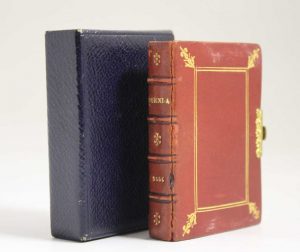 1 volume minuscule (7x5,30 cm) - Agenda (5 pages annotées) - Reliure basane orangée (1er mors, 1ère charnière fendus) - Fermoir en laiton, présence du crayon dans son étui de cuir - Plats ornés d'un double filet et de fleurons dorés - Dos à nerfs orné (recollé) et titré or - Gardes moirées - Tranches dorées - Coffret en chagrin marine.