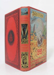 1 volume grand In-8° - Frontispice (en partie déchiré sans perte), titre gravé et 83 dessins de Benett, 12 grandes gravures en chromotypographie, 2 grandes cartes en chromolithographie - Reliure cartonnage polychrome de l'éditeur au portrait au 1er plat, Collection Hetzel, monogrammes JV JH au 2nd plat orné d'un encadrement en noir (Lenègre & Cie rel., plaque de Souze) - Dos au phare - Tranches dorées - Bel exemplaire.