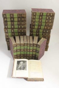 Complet de ses 70 volumes In-8° - 1 portrait frontispice - Reliure de l'époque demi-basane beige (certains plats rayés, - Dos lisses ornés (quelque peu frottés, de rares coiffes accidentées, quelques mors partiellement fendus) - Pièces de titre et de tomaison papier vert (de petits manques et décollements) - Une vie de Voltaire par le Marquis de Condorcet - Le Théâtre (8 vols.) - La Henriade - La Pucelle d'Orléans - Poésies (3 vols.) - Essai sur les mours (4 vols.) - Le siècle de Louis XIV (2 vols.) - Le siècle de Louis XV - Histoire de Charles XII - Histoire de l'Empire de Russie sous Pierre le grand - Annales de l'Empire - Histoire du parlement - Mélanges historiques (2 vols.) ; Politique et législation (2 vols.) - Physique - Philosophie (4 vols.) - Dialogues et entretiens philosophiques - Dictionnaire Philosophique (7 vols.) - Romans (2 vols.) - Facéties - Mélanges littéraires (2 vols.) - Commentaires sur Corneille (2 vols.) ; Correspondance avec le Roi de Prusse (3 vols.) - Corresp. avec l'Impératrice de Russie - Corresp. avec d'Alembert (2 vols.) - Correspondance générale (14 vols.) - Table analytique composée par Champagnac - Des rousseurs éparses - Tranches marbrées - Ensemble très convenable. Vicaire VII, 1137.