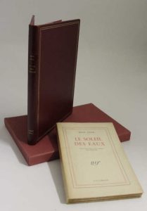 1 volume In-8° - Compositions de René Char in et hors texte en couleurs ou en noir - Reliure éditeur chagrin bordeaux - Plats encadré d'1 double filet doré - Dos lisse titré or - Tête dorée - Etui vieux rose (très légèrement fendu) - Très bon exemplaire en édition originale numérotée - On y joint : Du même - Le soleil des eaux - Spectacle pour une toile des pêcheurs - Paris ; Gallimard, NRF, 1951 - 1 volume In-12° broché - Edition originale du service de presse - Bon exemplaire.