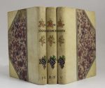 5 livres reliés en 3 volumes In-12° - Très nombreuses illustrations couleurs in texte, certaines hors texte contre collées - Nombreux tableaux et cartes dépliants - Reliure de l'époque demi-vélin crème à coins - Plats ornés de filets or et noir - Dos lisses joliment ornés d'1 grappe de raison en couleurs, titrés et tomés en noir et en couleurs - Couvertures moirées titrées or conservées - Courrier de l'éditeur annonçant la fin de la parution et justifiant du tirage reliée en début du tome III - Têtes dorées - Très bel exemplaire.