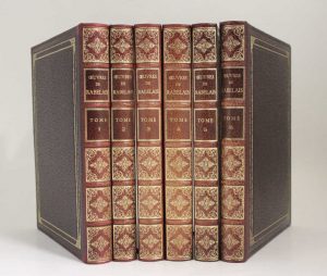 6 volumes grand In-4° - Illustrations en noir in et hors texte de Gustave Doré - Reliure éditeur cuir bordeaux à grain maroquin, plats encadrés d'un double filet doré - Dos à nerfs ornés titrés et tomés or (uniformément passés) - Gardes rouges moirées - Tranches dorées - Bon exemplaire numéroté.