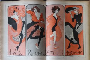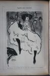 2 volumes grand In-4° - 1892 pages (pages 131-132 et 1497-1498 arrachées) - Du n° 1 (20 octobre 100) au n° 63 (28 décembre 1901) pour le 1er tome et du n°64 (janvier 1902) au n°115 (décembre 1902) au complet - Recueil de cette revue humoristique et grivoise comportant de très nombreuses illustrations en noir et en couleurs pour les n°87, 89 et 91, grâce aux collaborations d'artistes de l'époque, entre autres : Mirande, J. Villemot, H. Gerbault, Hermann-Paul, Radiguet, Wilette, Steinlen, Sancha, Roubille, D'Ostaya, Bac, H. Boutet, P. Iribe, Poulbot, etc. (le tome II comporte la table des illustrateurs en début d'ouvrage) - A noter également : la collaboration de Pablo Picasso (signant Ruiz) aux n° 46 (31 août 1901) et 48 (14 septembre 1901) avec respectivement : 1 composition à pleine page (page 774) et 4 compositions sur 1 page (page 820) - Reliure de l'époque demi-chagrin brun (mors légèrement frottés) - Dos à nerfs ornés, titrés et tomés or (légèrement frottés) - De rares déchirures mineures en marge - Bons exemplaires - Rare.