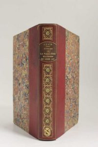 1 volume In-8° - Portrait frontispice et illustrations hors texte en noir - Titre restauré avec manque à 1 coin - Reliure de l'époque demi-maroquin bordeaux (3 coins usés) - Dos lisse joliment orné or avec incisions de pièces de maroquin brun aux motifs floraux, armes dorées de la famille de la Revelière en son bas - Pièce de titre maroquin brun - Tête dorée - Bel ex-libris armorié du Comte de la Revelière - Bon exemplaire.