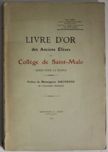 BAZIN (Yves) - Livre d'or des anciens élèves du collège de Saint-Malo morts pour la France - Saint-Malo ; Imprimerie R. Bazin, 1921 -