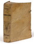 in- 8, vélin de l'époque à recouvrement avec lacets, titre manuscrit au dos, taches de mouillure sur les plats.