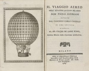 CASTELLI (Carlo). Il Viaggio aereo dell'illustre cavalier milanèse Don Paolo Andreani esposto dal... in una lettera diretta al sig. Faujas de Saint Fond... Milan, Fratelli Pirola, 1784 ;