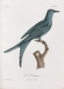 Réunion de 100 planches coloriées destinées à l'ouvrage en un volume in-4, brad. cart. papier bleu marb. de l'époque avec pièce de titre «Collection d'Oiseaux».