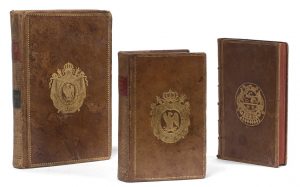 SANNAZARIUS (Jacques). Opera Omnia... Francfort, J.M. Hagen, 1709 ; in-12 veau brun, triple fil. dor. encadrant les plats, armes frappées en or aux centres, dos ornés (Rel. de l'époque). Aux armes de la famille Villars
