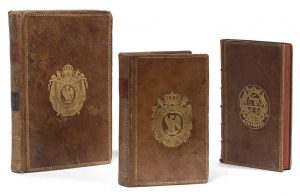 in-8 veau fauve marb., pet. dent. dor. encadrant les plats, armes frappées en or aux centres, dos orné avec aigles dor. et motifs dor., pièces de titre de mar. rouge et vert (Rel. de l'époque).