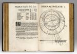 Elle se divise en deux parties et est illustrée d'un grand bois sur le titre, d'une jolie figure au verso du dernier feuillet liminaire montrant l'auteur qui observe le ciel à travers un instrument, et de 34 diagrammes ou figures d'astronomie dans le texte, dont 13 SONT POURVUES DE VOLVELLES (sur 15).