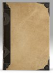 In-4, plats rigides de vachette beige cendrée, au mors règle plate de veau brun sombre épaulée de pièces d'ébène serties de laiton encadrant à niveau les pièces d'attache de veau brun criblé, en arc-de-cercle et triangle (inversées au second plat), au coin, des pointes «sèches» traitées dans le même esprit, couture sur deux lanières de veau brun sombre, dos de vachette beige, claies ton sur ton en tête et queue, gardes de vachette beige cendrée. Non rogné, chemise demi-vachette, étui (J. de Gonet 1979).