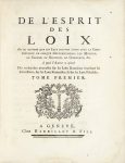 MONTESQUIEU. De l'Esprit des loix Ou du rapport que les Loix doivent avoir avec la Constitution de chaque Gouvernement, les Mœurs, le Climat, la Religion, le Commerce, &c. Genève, Barrillot & Fils, s.d. [1748]. 2 volumes in-4,