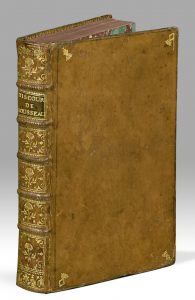 In-8, veau blond, filet à froid encadrant les plats, pièces d'armes dorées aux angles, dos orné, pièce de titre vert olive, roulette intérieure, tranches rouges (Reliure de l'époque).