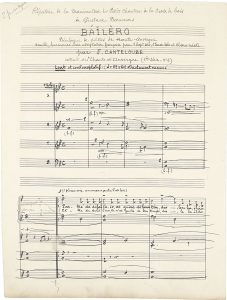 Joseph CANTELOUBE. MANUSCRIT MUSICAL autographe signé, Báïlèro, 1941 ; titre et 3 pages petit in-fol.