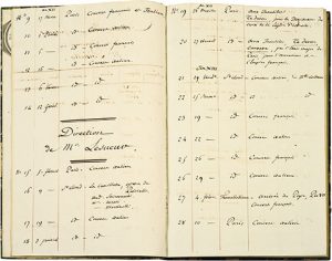(plus ff. blancs), dos parchemin teinté vert, étiquette manuscrite sur le plat sup., étiquette du papetier Susse à l’intérieur (reliure de l’époque).