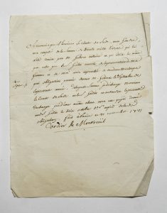 Une page in-8 attestant que le Président CORDIER de MONTREUIL, beau-père du Marquis a prêté à ce dernier (pour rembourser lui même une autre dette) la somme de 30.000 livres.