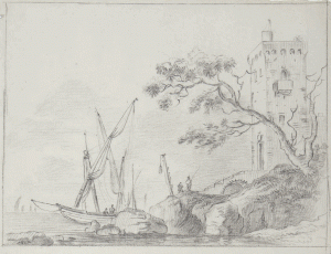 DESSIN d'ITALIE de Jean-Baptiste TIERCE (Rouen 1737 - Florence 1794). Collection du Marquis de Sade : Marine côtière