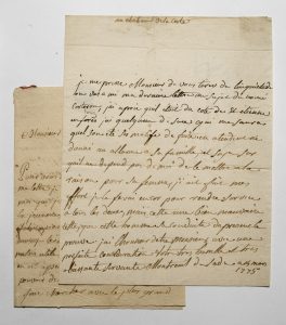 2 lettres manuscrites, écrites au Château de la Coste, signées Montreuil de Sade, adressées au Curé de Rolampont, près de Langres, en vue de retrouver Carteron, dit La Jeunesse, domestique de son mari.