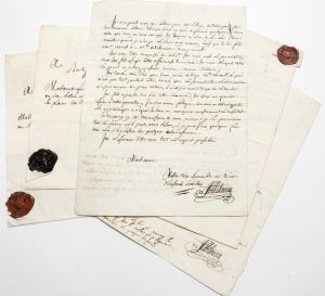 Set of 5 autograph letters addressed to Madame la Présidente de Montreuil by her estate manager, Monsieur HILLEMIN