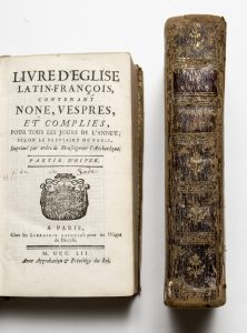 LIVRE DE MESSE avec signature de la mère du Marquis : Livre d'Eglise contenant none, vespres et complies, pour tous les jours de l'année, selon le bréviaire de Paris. Paris. Libraires Associés. 1752.