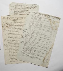 MÉMOIRE DE TAILLEURS du Marquis de SADE, CARLIER et JEANSON pour le récapitulatif des travaux et des dettes en découlant.