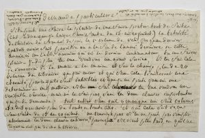Sade s'est souvent plaint de son manque de papier en prison, ce billet en est un exemple flagrant avec une fin de texte écrit dans un coin à l'envers.