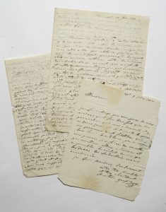 3 lettres manuscrites in-8, du notaire Gaufridy, envoyées à Armand de Sade, fils du Marquis, datée du 9 juin 1810, 19 février 1811 et 21 avril 1812. Petits défauts et trous sur 3 des lettres.