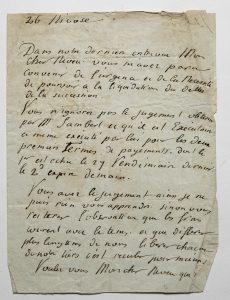 Après avoir précisé à son neveu qu'il se tient à sa disposition, il conclut ainsi, «voulez vous mon cher neveu que nous soldions chacun notre part, la mienne est offerte depuis longtemps».