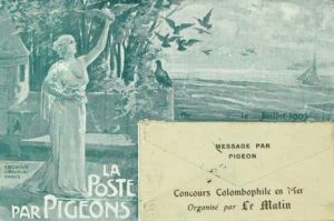 Poste 3 cpa : porte timbres (2), poste par pigeons « Le Matin»