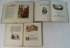 grands formats en feuilles sous chemise + étui, tirages limités et numérotés: "Le vin et les médecins" 1946, "Chanson Bachiques" 1945, "Vignoble Français" illustré par A. Galland