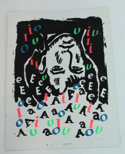 (RIMBAUD) gravure originale couleur de H. PAUGET Rimbaud et voyelles (36x27cm)