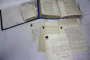 faisaient partie de ses archives ( prospectus, bulletins de promotion, programmes ,factures, tickets de rationnement, coupures de journaux...etc.).