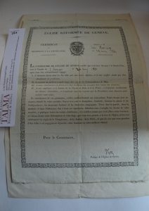 1 – Certificat pour Jean BERNEY daté du 24 mars 1831, 1 ff. In folio, signé par le pasteur de l'église de Genève.