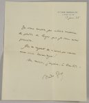 1 feuille recto (21x17,5 cm) à l'en-tête de la rue Vaneau, enveloppe conservée avec affranchissement et cachet.