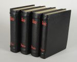 4 volumes in-4, chagrin noir, dos à nerfs avec titre en rouge, gardes de papier marbré or et gris, têtes dorées. Exemplaire numéroté sur pur fil lafuma. Emboitages de l’éditeur. Illustrés de 200 dessins en noir d'EDY-LEGRAND en pleine et double page, frontispice en coul. du portrait de Dante. Très bel état.