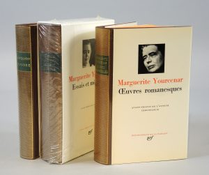 BIBLIOTHÈQUE DE LA PLÉIADE. M. YOURCENAR. 1 vol. Oeuvres romanesques (rhodoïd, jaquette, étui) - 1 vol. Essais et mémoires (rhodoïd, étui, sous blister)