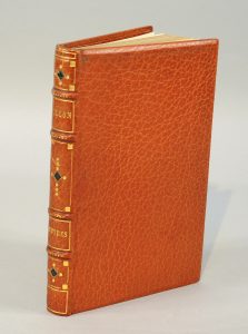 Reliure chagrin caramel, dos à nerf, tranche sup. dorée, emboitage