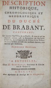 [ DE BECKERS, Jean dit Didace de Saint-Antoine].- Description historique, chronologique et géographique du duché de Brabant [...]. Première édition. Bruxelles, J.J. Boucherie, 1756.