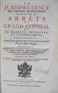 DU LAURY, Remi-Albert.- La jurisprudence des Pais-Bas autrichiens établie par les arrêts du Grand Conseil de Sa Majesté imperiale et catholique, residant en la ville de Malines; auxquels sont ajoutés quelques décrets portés au Conseil privé de...