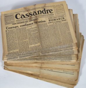 Il cessa de paraître en 1939. À l'opposé de "Combat", "Cassandre" et "Le Nouveau Journal" sont deux organes typiques de la presse collaborationniste. Tous deux ont eu pour patron le journaliste germanophile Paul Colin, abattu en 1943 par le jeune résistant Arnaud Fraiteur.